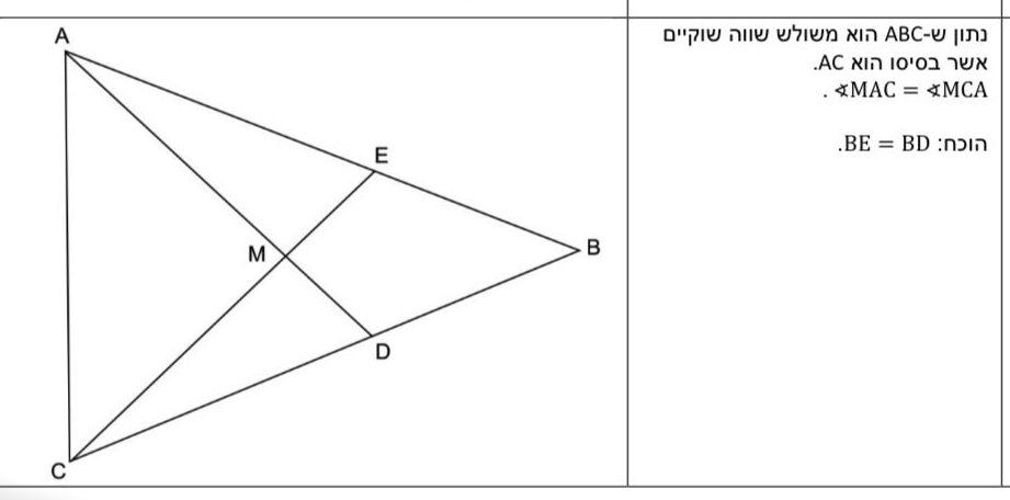 ע"פ המשפט: משולש שבו זוויות הבסיס הן שוות הוא משוש